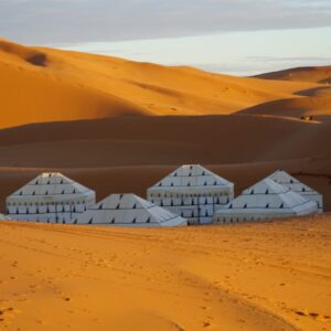 • One night in an authentic Berber desert camp ✓ Meals: All Moroccan breakfasts and dinners (vegetarian options available upon request) ✓ Camel Trekking: Sunset and sunrise camel rides to and from the desert camp ✓ Activities: Sandboarding in the dunes ✓ Amenities: Swimming pool access at accommodations, onboard Wi-Fi during drives, luggage handling service